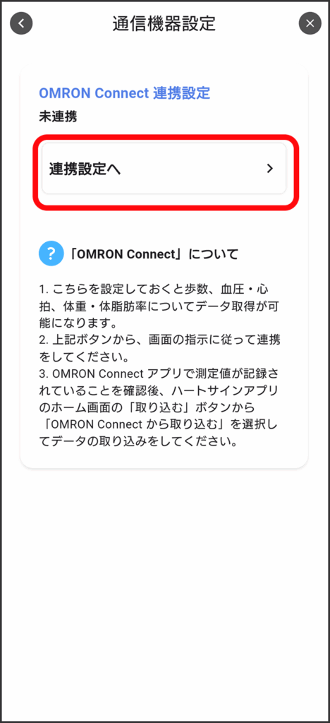 OMRON connectと医療機器の連携方法については、こちらをご参照ください