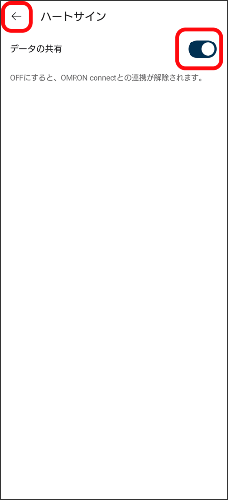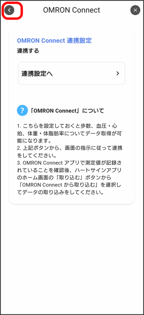 8.連携済みに「ハートサイン」が入っていることを確認し、左上の矢印をタップ