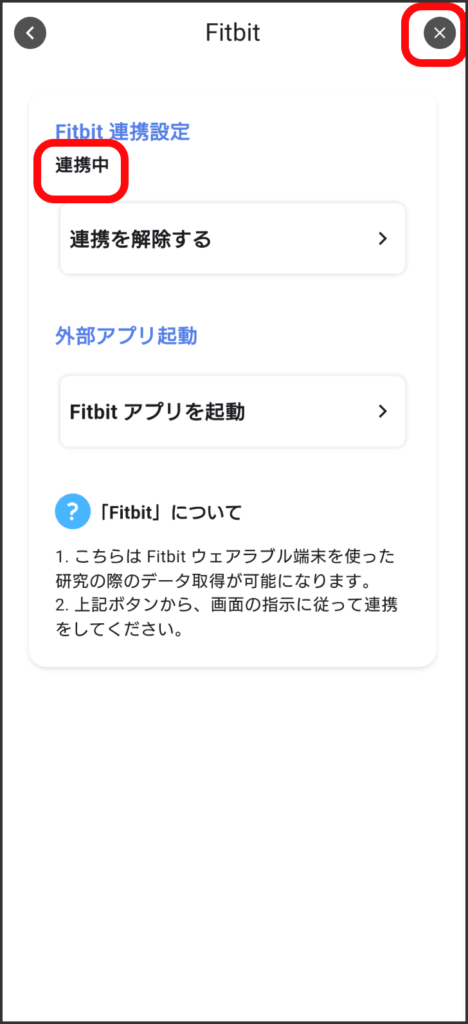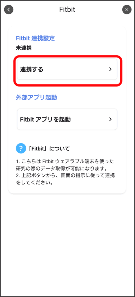 ※この連携は、Fitbit の研究に参加されている方のみが対象です。
