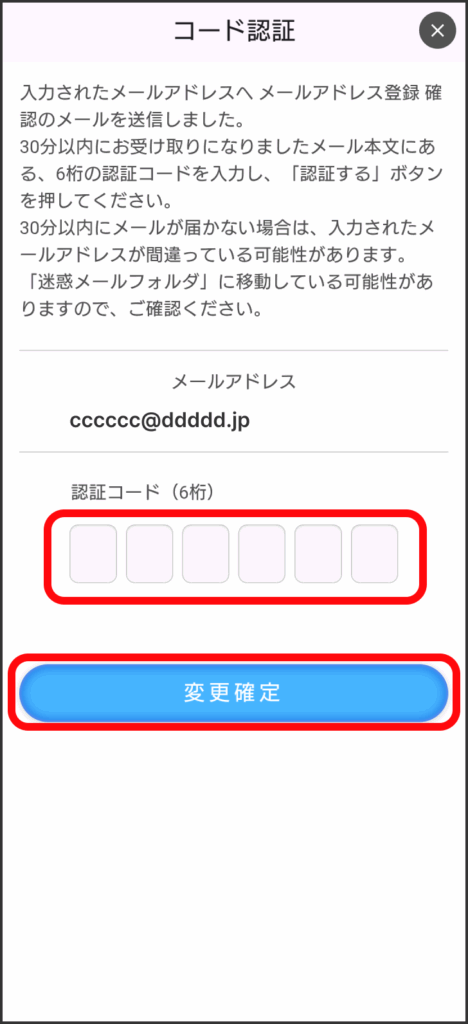 4.新しいメールアドレスを入力し、「送信」をタップ