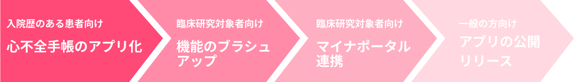 「ハートサイン 心疾患・心不全患者向け」アプリは、三重大学医学部附属病院循環器内科が主体となり、医師と看護師の豊富な経験と研究に基づいて開発された専用アプリです。2023年より研究・開発を進めており、2025年10月には、より見やすく、ご利用いただきやすいようリニューアルを行いました。